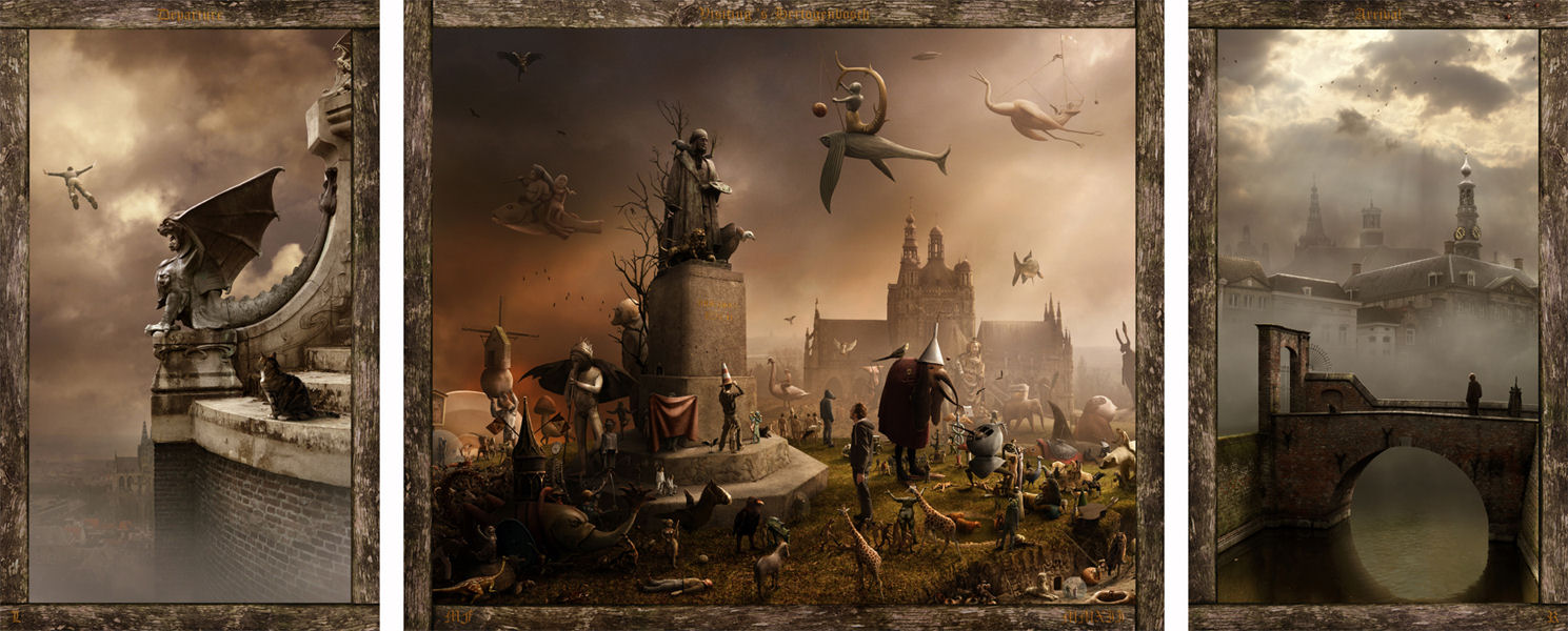 Werk je volgens een bepaalde methode? Ik kan wel heel gericht en volgens plan werken maar het liefst werk ik volgens mijn eigen chaos methode. Dit begint met een vaag idee of verlangen en dat werkt langzaam soms via omwegen ergens heen, ik maak ook wel schetsjes en ga dan op zoek naar de juiste dingen om te fotograferen. Het computer gedeelte neemt het minst tijd in en daar werk ik vrijwel altijd met een soort routine.