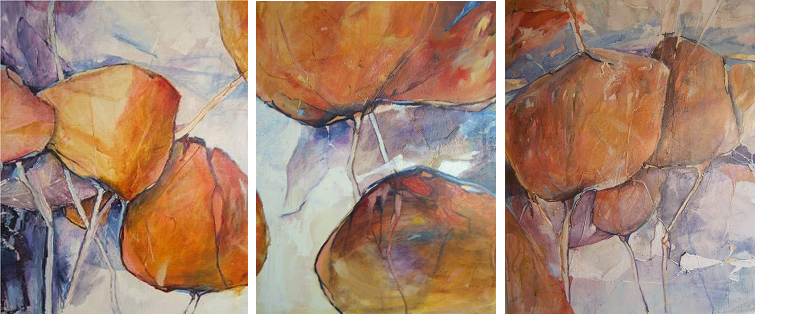 “door de abstraherende vormen en kleur. Het was een van de eerste keren dat ik een drieluik heb gemaakt, ik heb er erg veel positieve reacties op gehad. Degene die het heeft gekocht zag het, en zei meteen dit is voor mij. Ik ben het zelf op wezen hangen bij de koper en het heeft een erg mooie plaats gekregen”.Bijlage:
