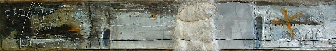 Tijdens het schilderen is ze gaandeweg meer met verschillende materialen gaan werken en heeft min of meer de vorm losgelaten.
