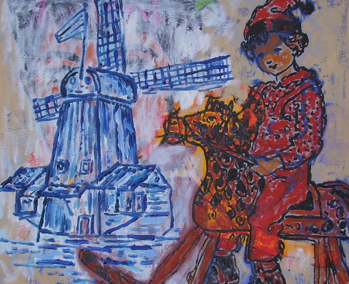 Nu te koop kleurrijke verhalende schilderijen van Ramon jan Vet in de ART SALE expositie.
