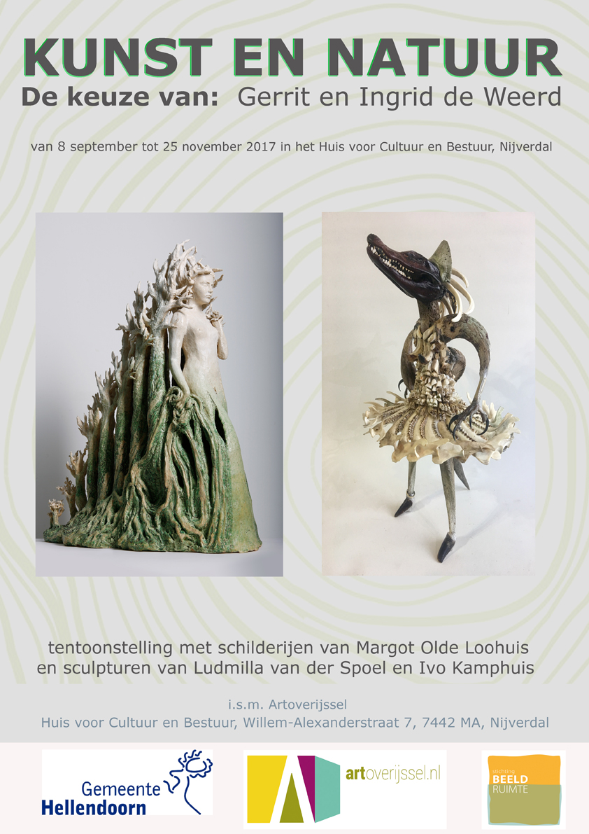 Gerrit en Ingrid de Weerd uit de gemeente Hellendoorn selecteerden met veel liefde en overtuiging drie kunstenaars uit Artoverijssel , een digitale expositieruimte met een selectie van bijzondere professionele beeldende kunstenaars uit Overijssel. Met het presenteren van deze drie bijzondere talenten tijdens ‘Kunst en Natuur’ in het Huis voor Cultuur en Bestuur helpen we enthousiast mee aan de doelstelling om kunst zichtbaar te maken voor een breed publiek.