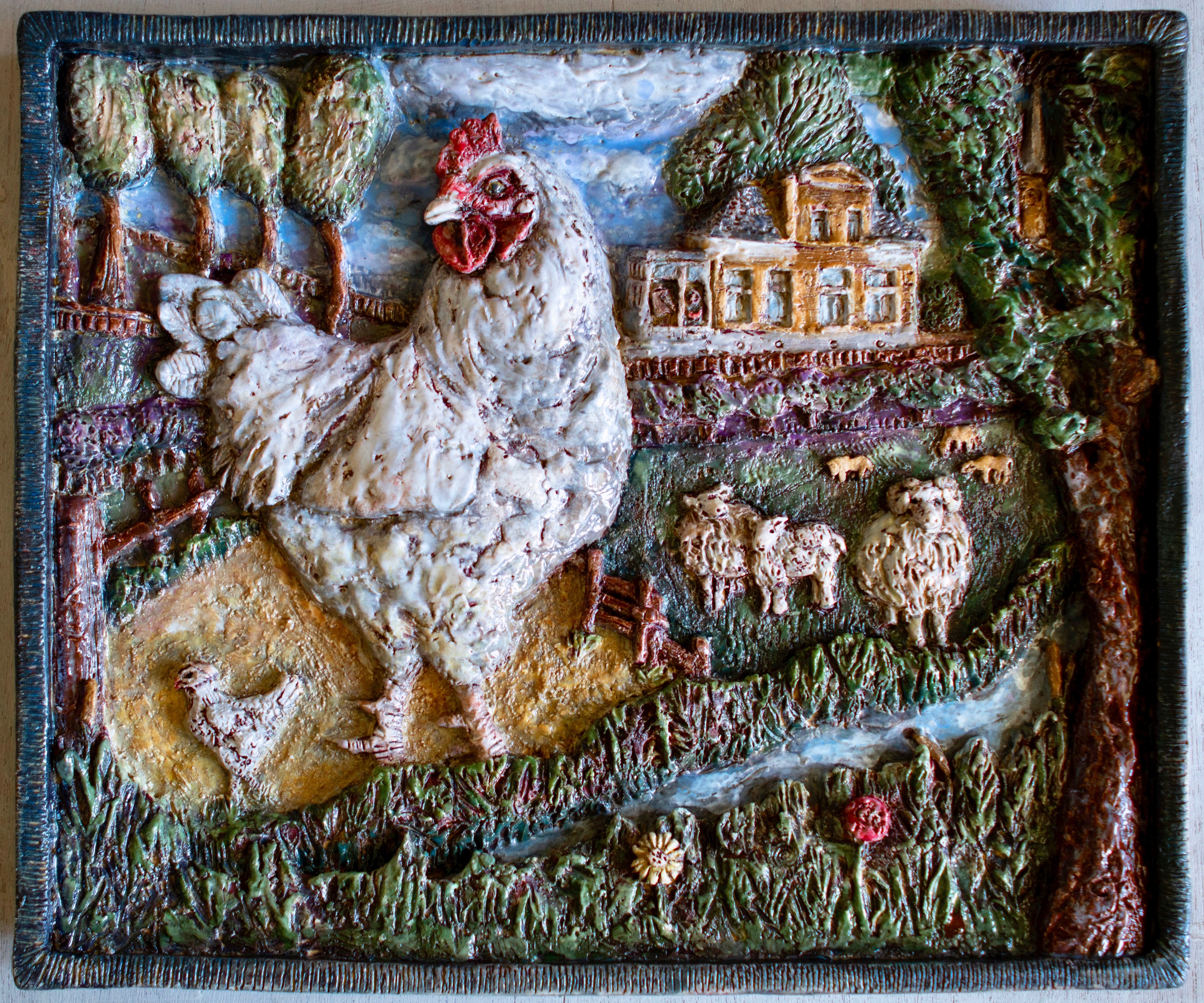 Jan Mankes heeft de laatste jaren van zijn leven in Eerbeek gewoond en gewerkt. Mijn gevelsteen laat de wereld zien zoals Jan Mankes het 100 jaar geleden schilderde. Met de stromende beek, de weilanden, de paarden en de schapen, bomen, zelfs de kerk, waar zijn vrouw als dominee werkzaam was. In mijn gevelsteen heb ik gekozen voor een witte kip in de hoofdrol als verwijzing naar Jan Mankes' beroemde schilderij de Witte Haan. Vanaf de beek zie je zijn woonhuis, dat nog steeds in Eerbeek staat. Als je goed kijkt zie hem daar zitten, in de serre, werkend aan zijn schilderij. Met mijn gevelsteen "de wereld van Jan Mankes" doe ik mee aan de wedstrijd '100 jaar Jan Mankes'. Via de link kun je op mijn werk een stem uitbrengen. https://lnkd.in/d5HUbXS
