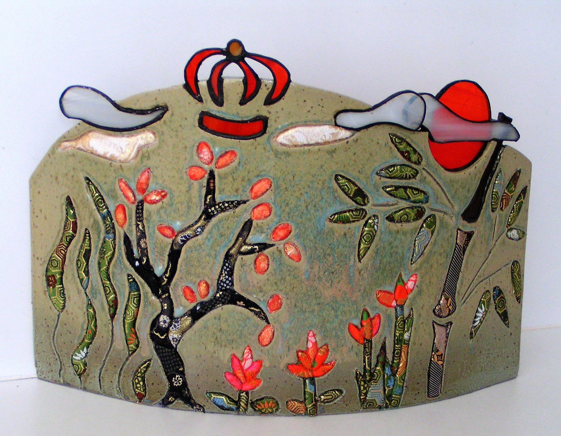 Tot en met 17 februari a.s. zijn mijn keramieken met Japanse (kimono)brokaatzijde te bezichtigen en te koop in [b]Galerie Kunstzicht [/b] te Waddinxveen. Voor het eerst ook te zien mijn speciale kunstwerk "Creation". zie bestand hierna Adres: Winkelcentrum Gouweplein / Tussenzicht 3 / 2741NM. Openingstijden: donderdag en vrijdag 13.00-17.00 / zaterdag 11.00-17.00 Ook andere kunstenaars zijn daar zoals: Anneke van Eijken met aquarellen volgens de "Nat-in-Nat" techniek.