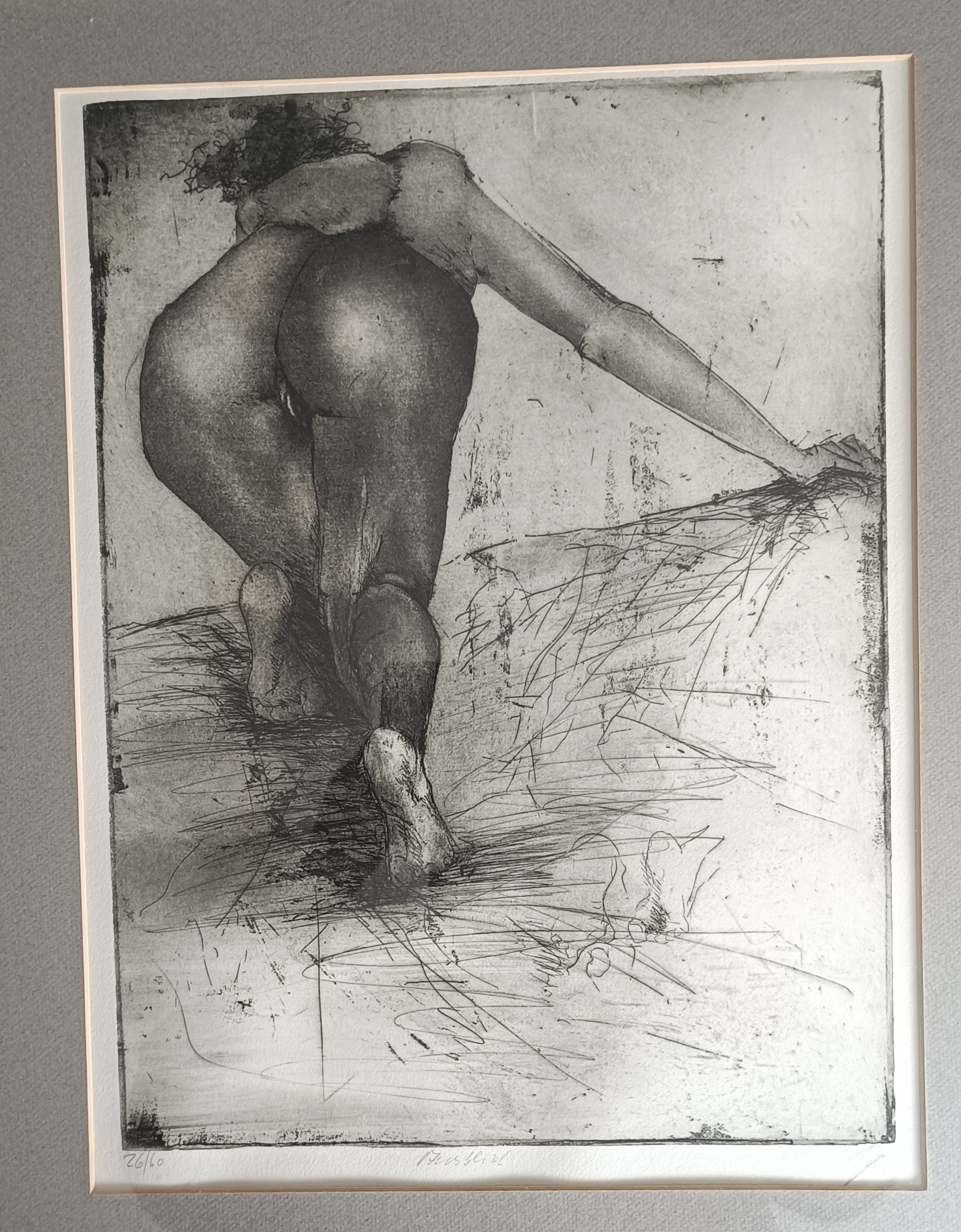 Kijk er al een tijd tegen aan, ( met plezier ). Maar heb geen flauw idee wie de kunstenaar is. Hoop op dit forum met kunstliefhebbers iets meer komen te weten over dit werk