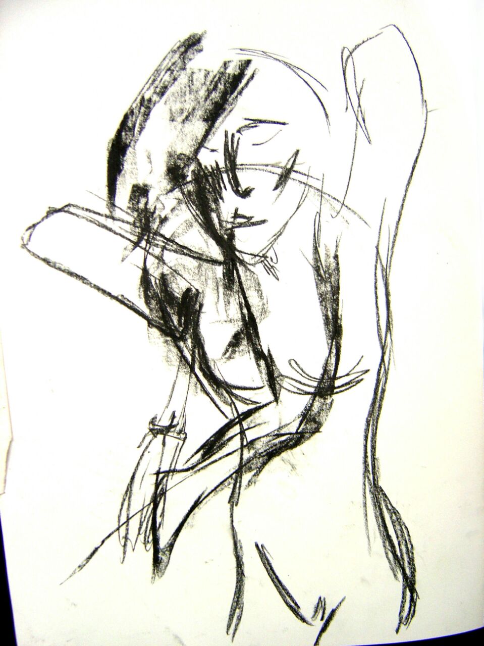 Bijgaand een afbeelding van een schets. Als ik het me goed herinner ben ik hem ook tegengekomen toen ik aan het zoeken was naar werk van Rodin... maar dat weet ik niet meer zeker. Nu probeer ik er meer over te weten te komen maar kan niet vinden van wie dit werk is. Als er iemand is die me er meer over kan vertellen zou ik dat zeer waarderen.