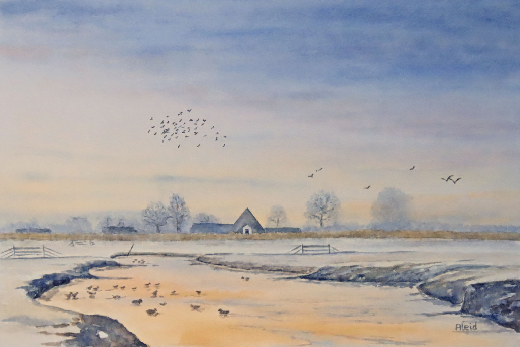 Mijn naam is Aleid Hagen (1954). Ik woon in Oterleek en schilder veel plekjes uit de Schermer en omgeving. Ik probeer de sfeer en wolkenluchten van het landschap te vangen in mijn aquarellen....