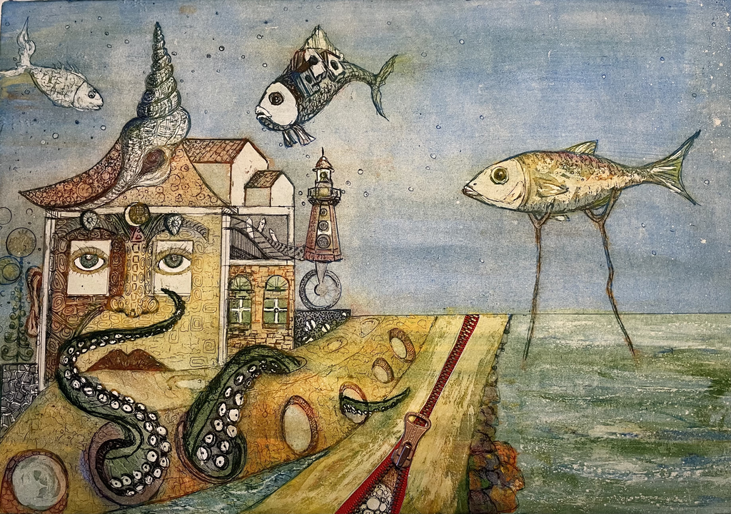 Ik maak al 19 jaar lang etsen met veel kleur, fijne structuren en fantasierijke onderwerpen. Door mijn manier van werken is geen afdruk hetzelfde.
