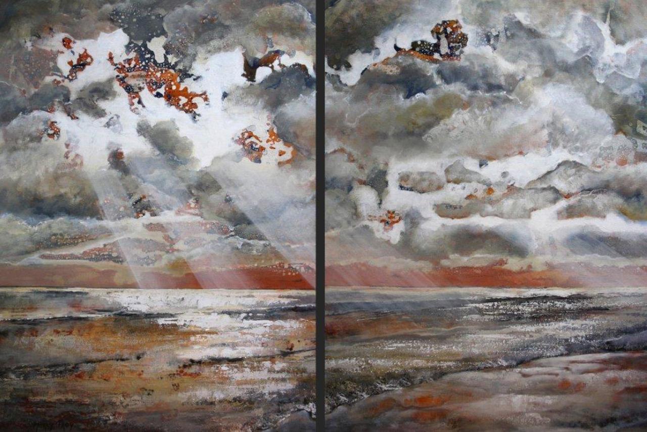 Marly Freij maakt grote kleurrijke, maar ook meer ingetogen schilderijen in gemengde techniek, met name sferische landschappen en abstracte composities