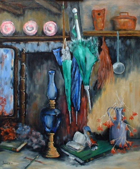 Stilleven met olielamp