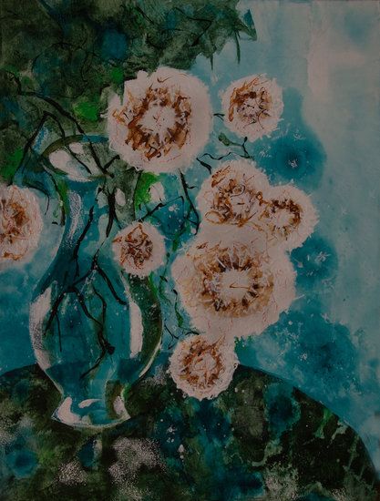 Paardenbloemen in ronde vaas