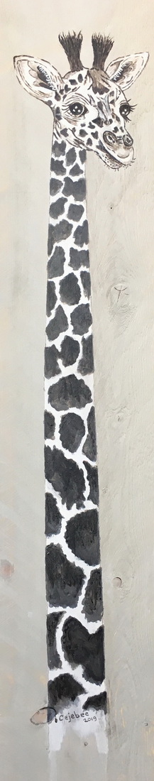 Giraffe op groeiplank voor neefje