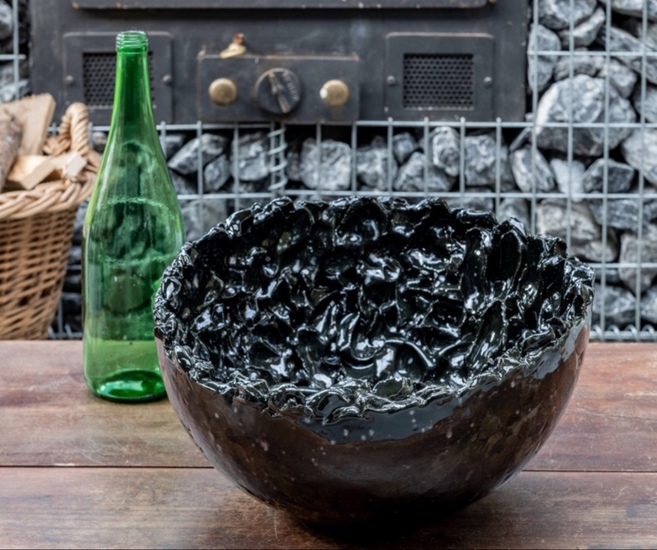 Zwarte ovale schaal.