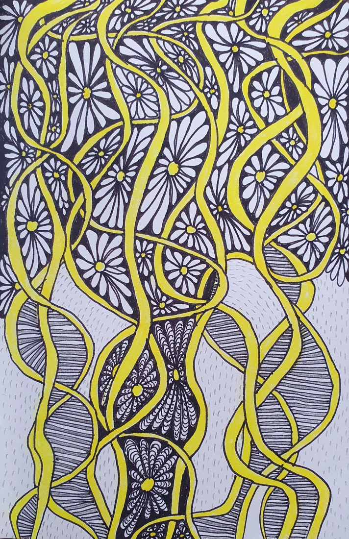 White, yellow and black