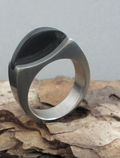 titanium ring met zwart plaatje