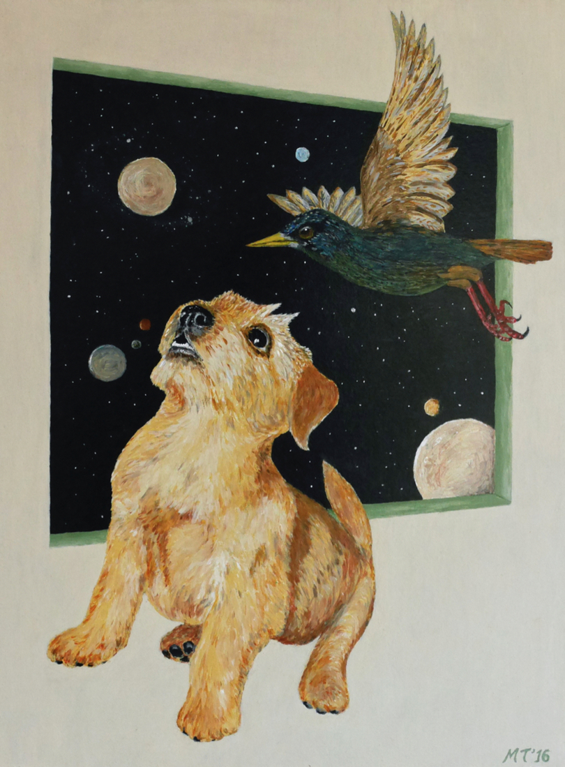 "Dekking zoeken" 50x65 cm.