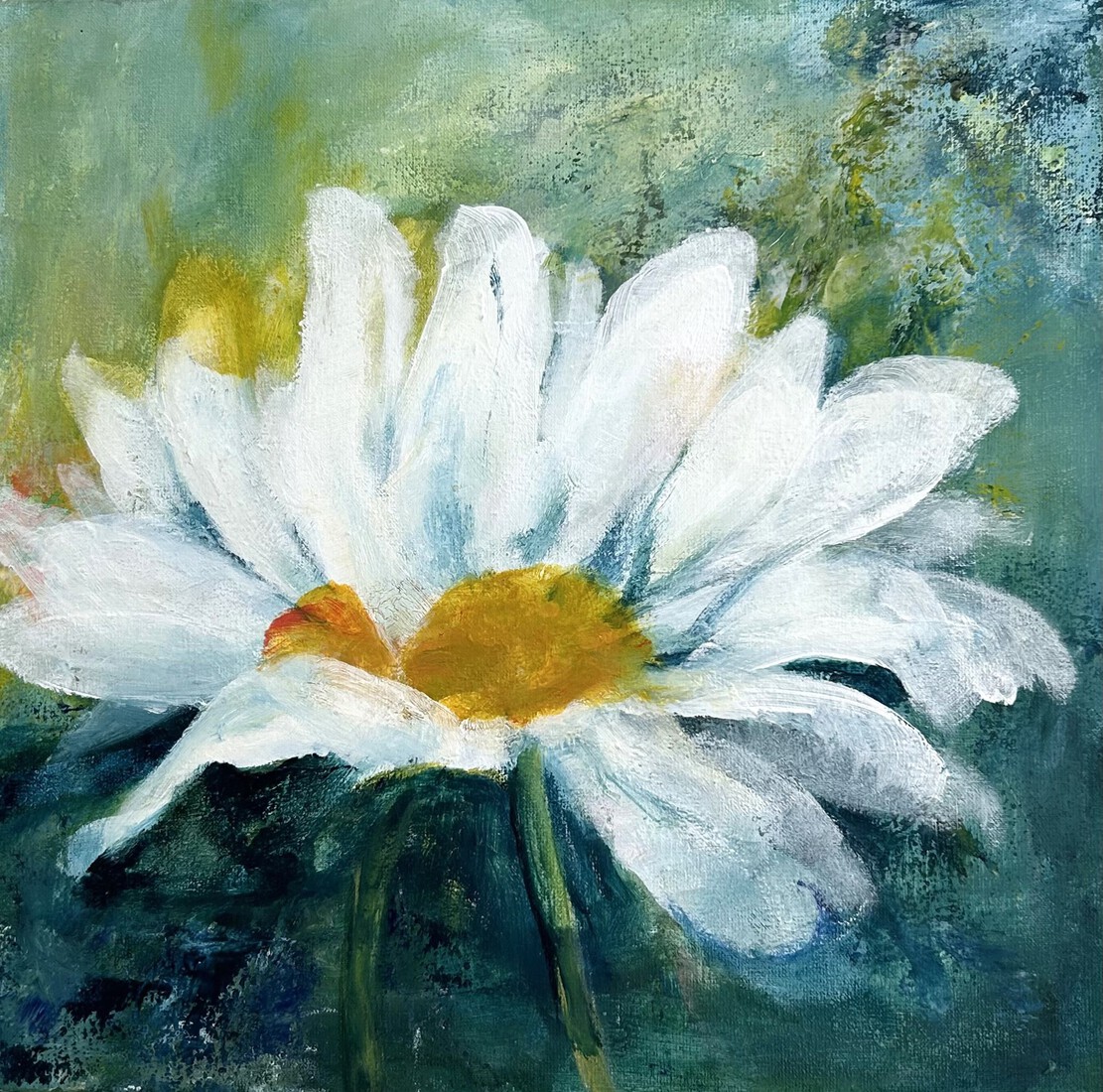 Bloemen op geel vlak — €120,00