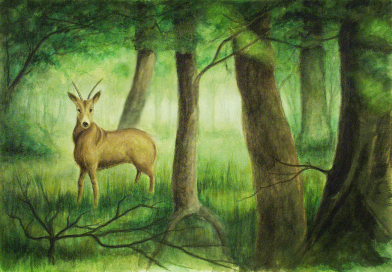 Met de Stroom Mee, aquarel