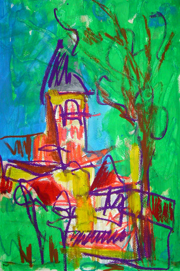 'Landschap naar Raveel' - kleurige gouache op papier uit 2012; niet meer beschikbaar