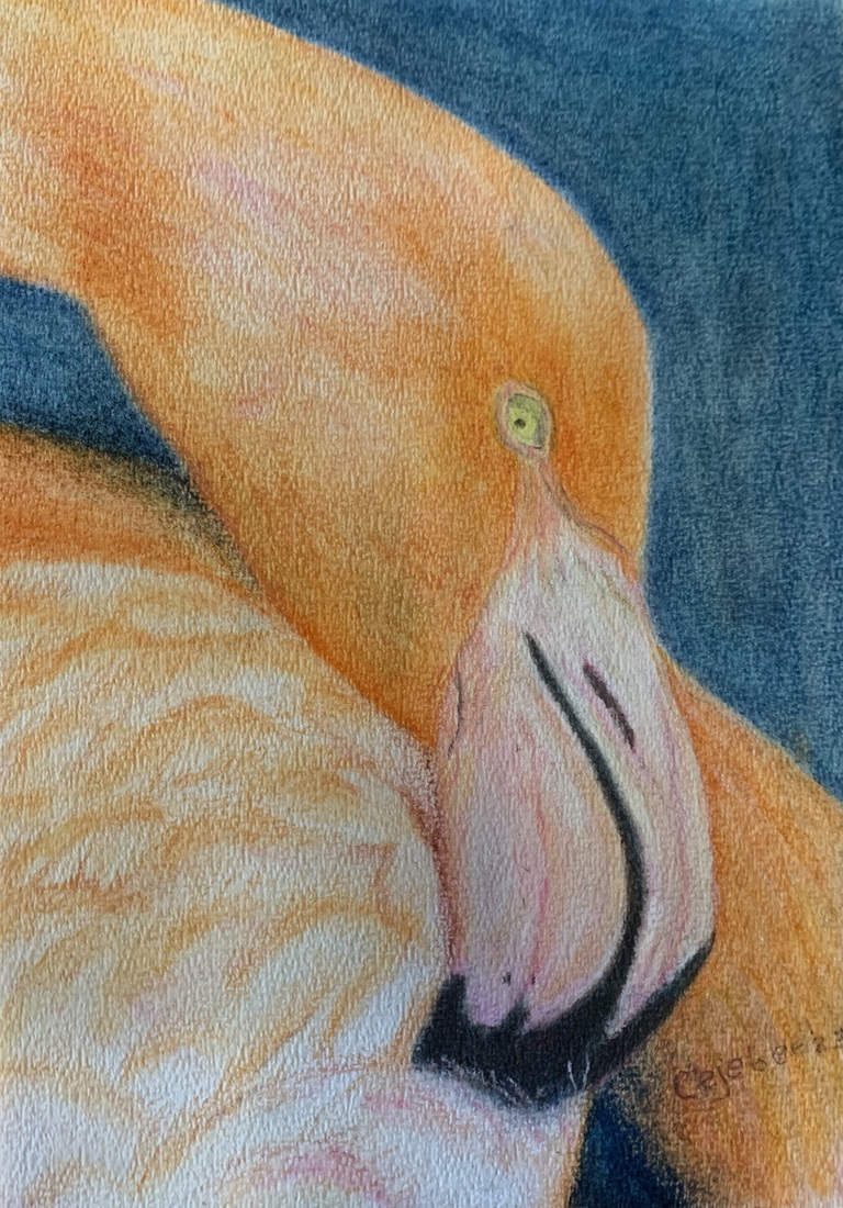 Flamingo met kop in veren