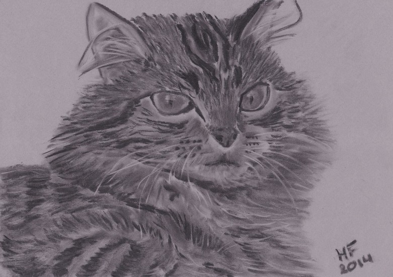 Luie kat in houtskool