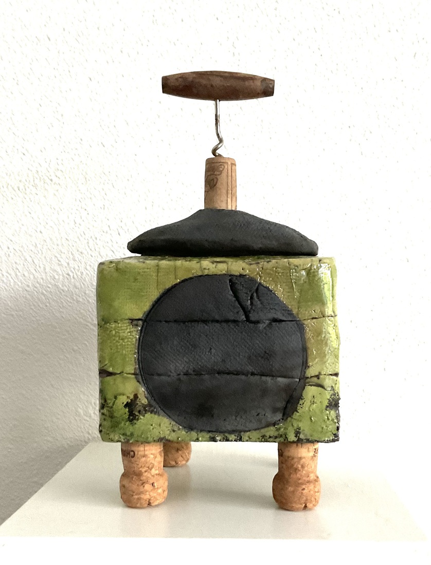 Kurkenpot raku gestookt met antieke kurkentrekker