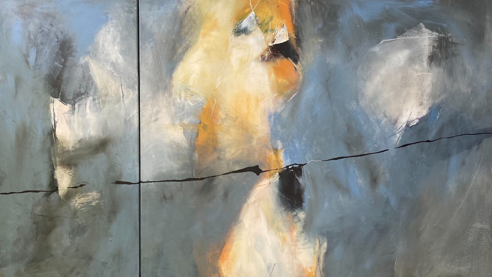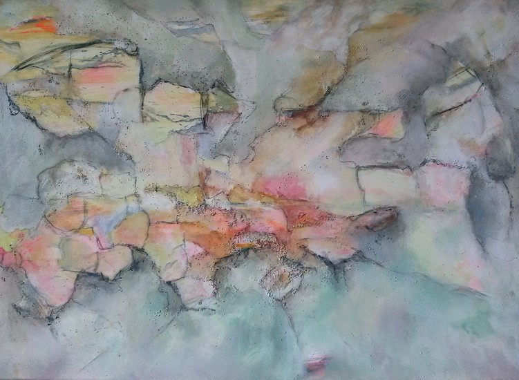 'Aan zee' - een groot atmosferisch abstract schilderij nr. 4.044; gratis kunst, maar niet meer beschikbaar; Fons Heijnsbroek