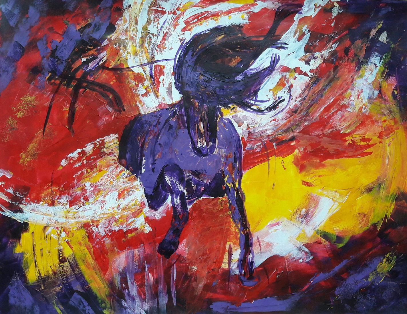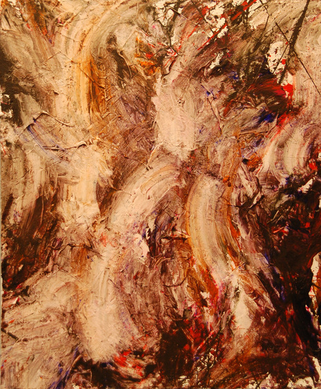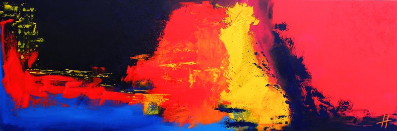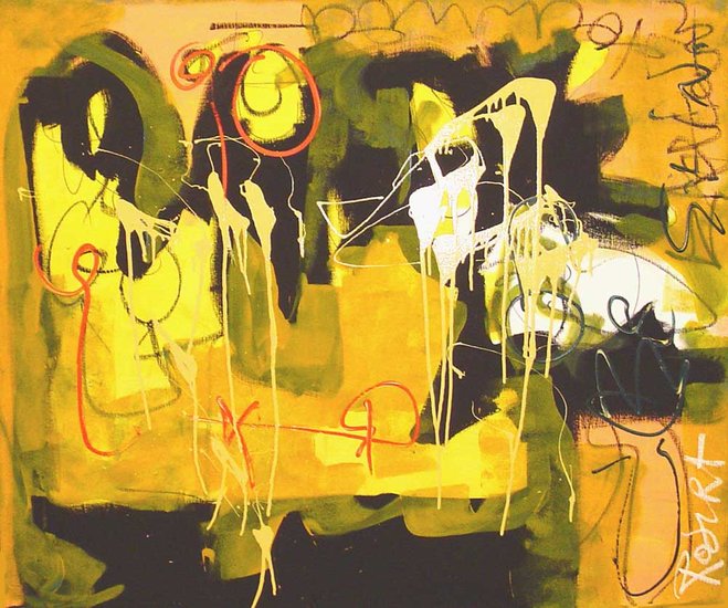 'Who is afraid of..' (1e Benfo) - een modern, abstract en groot schilderij; samen geschilderd door Ben Vollers & Fons Heijnsbroek; te koop