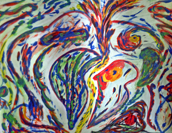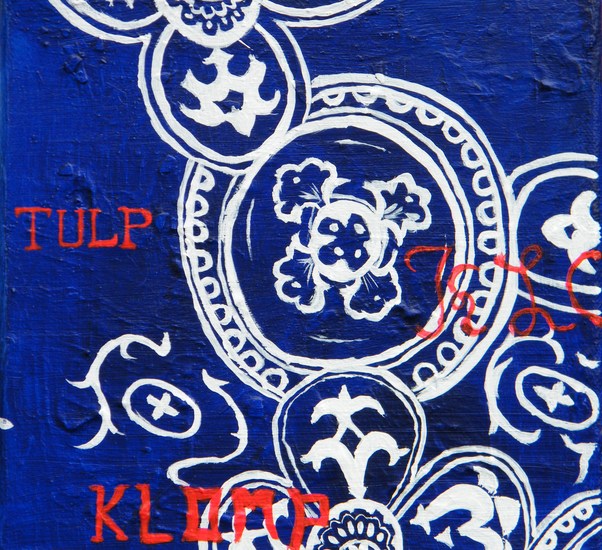 'Arabesk' - een kleurig schilderij (in de serie Mill with a view), samen geschilderd door BenFo: Ben Vollers & Fons Heijnsbroek; te koop — €1600,00