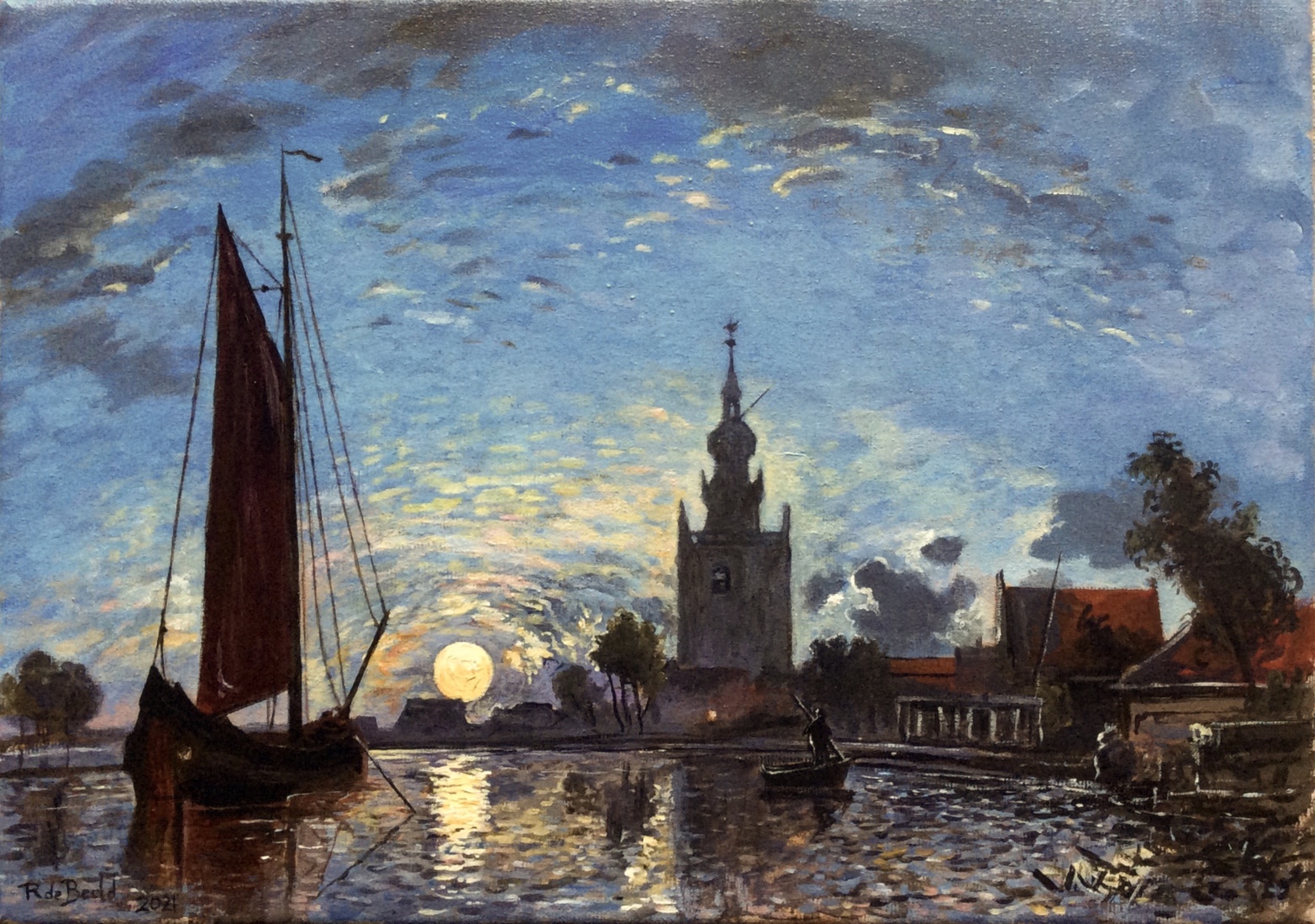 Zicht op Overschie bij maanlicht