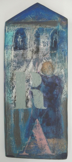 mixed media in spiegelkastje in lijst