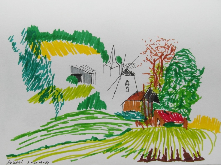 Grachtenpanden aan het Franekereind in Harlingen - Potlood