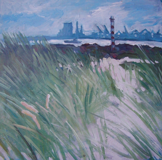 'De pier van IJmuiden' - groot abstract landschap; nog beschikbaar, Fons Heijnsbroek