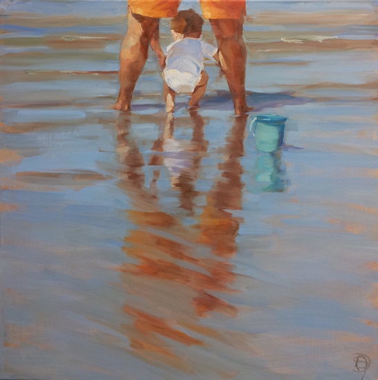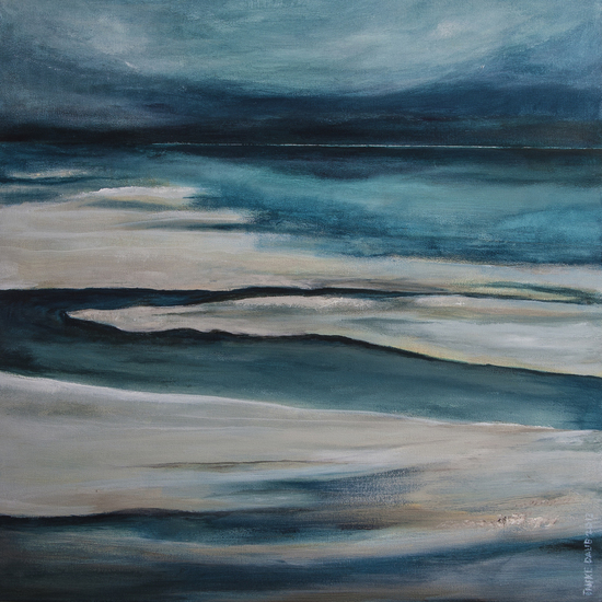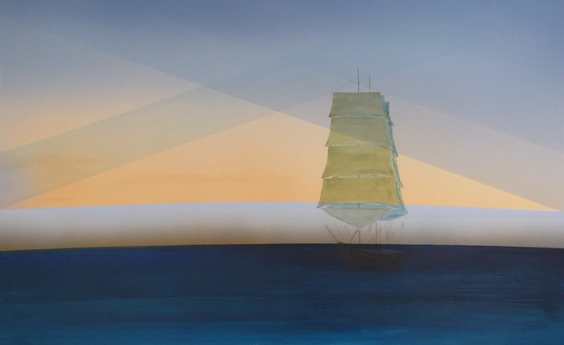 Op Open Zee, acrylverf schilderij van zeegezicht