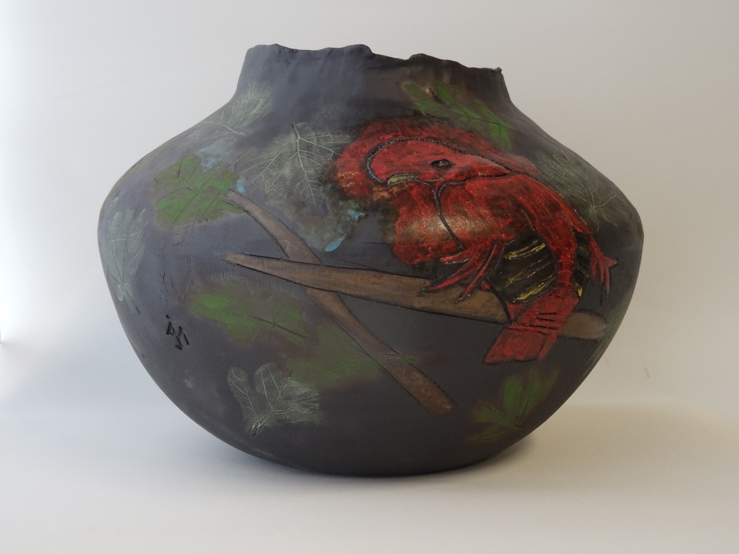 Chinese pot met roodborst.