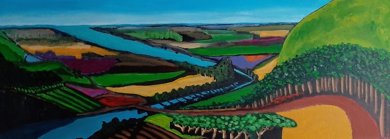 Wachten op Hoog Tij, acrylverf schilderij van zeegezicht