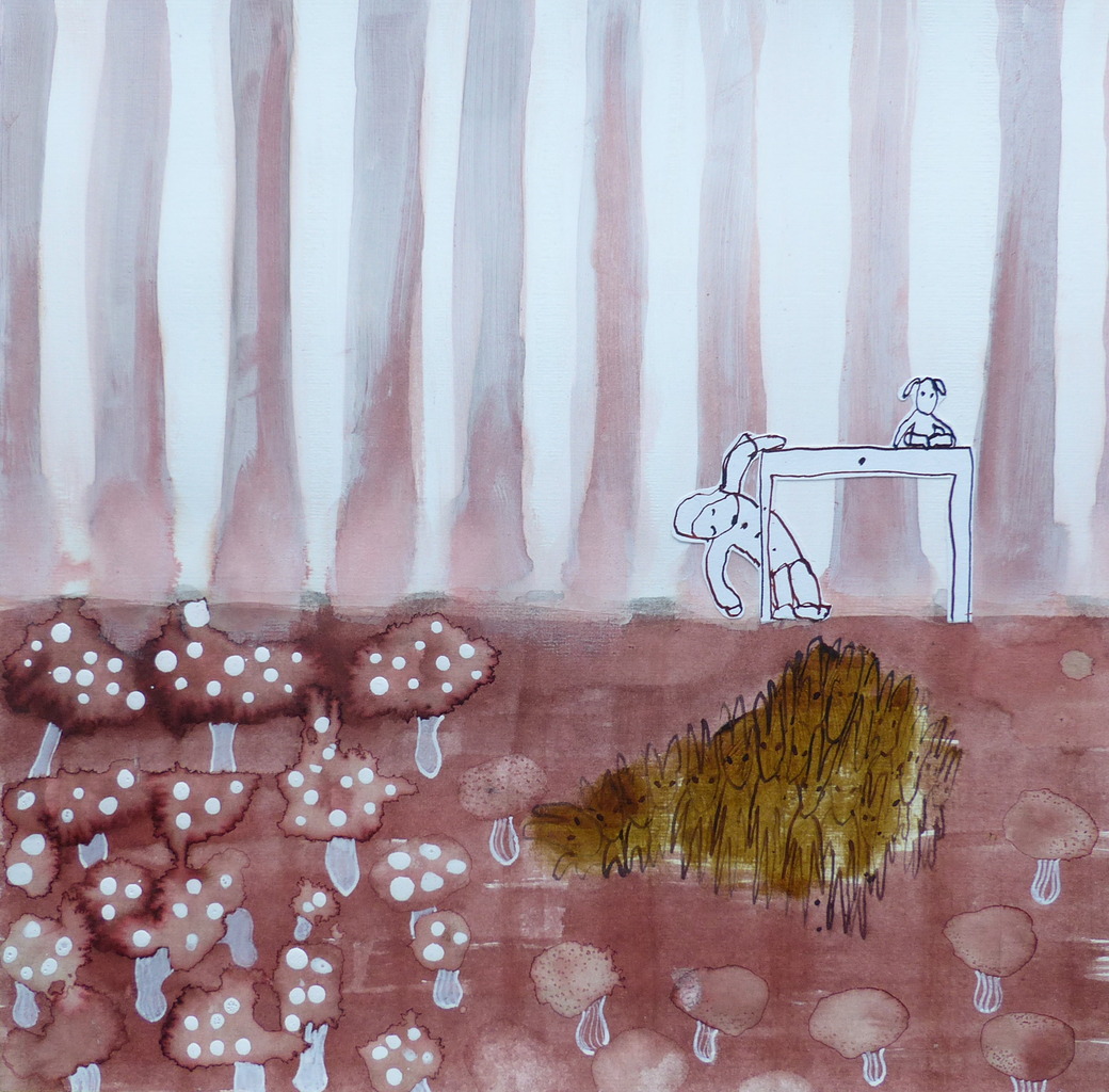 OI-inkt, bister, acrylverf 30 x 30 cm