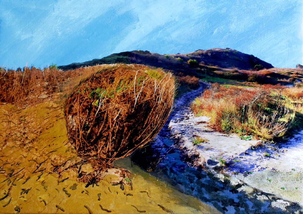 Nog een werk van de duinen bij het Zuiderstrand, Den Haag. Collageschilderij op linnen.