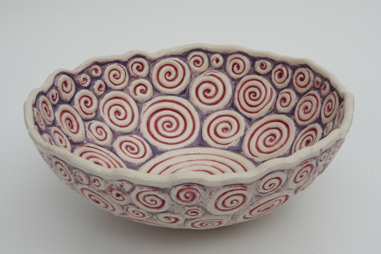 schaal met spiraalvormen kleur rood/paars