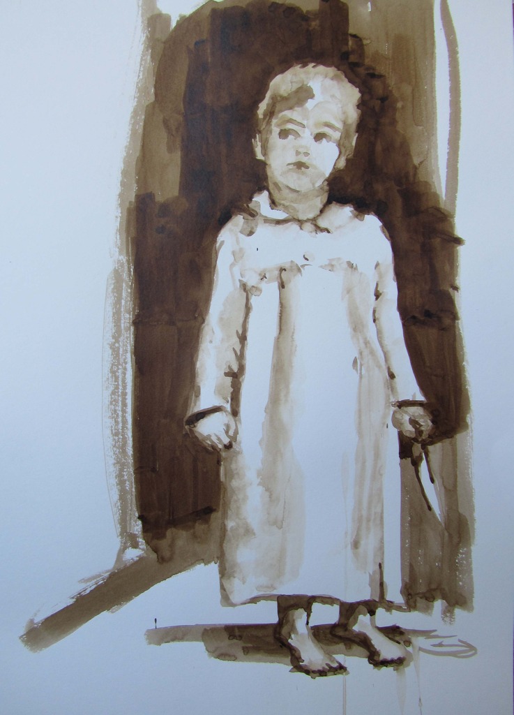 Een zwarte gedachte: meisje in nachtpon met mes