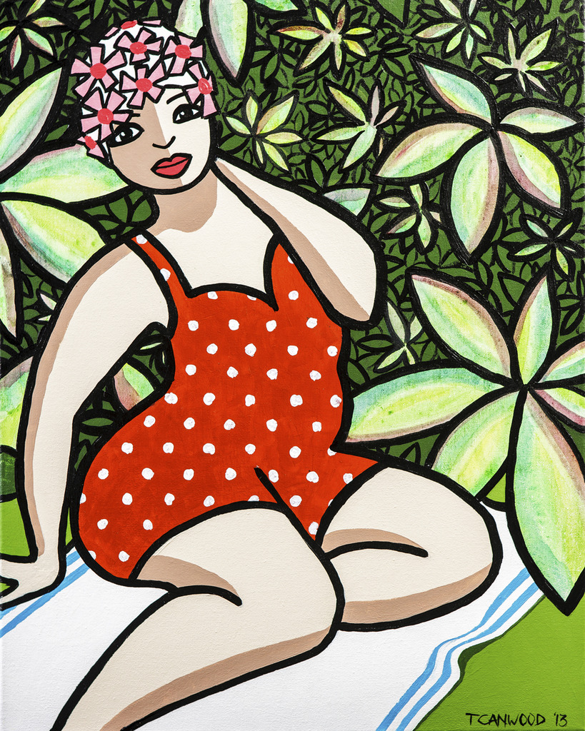 Vrouw in badpak Acryl en waterverf op aquareldoek Dit origineel is ook als reproductie op doek te bestellen op ieder gewenst formaat. Stuur een mail voor meer informatie. Wil je dit ontwerp op een phone case, tas, kussenhoes, etc ga dan naar http://fineartamerica.com/artists/trudie+canwood