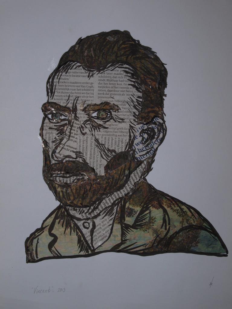 Een nieuw schilderij gevonden van Vincent van Gogh. Nieuws dat me raakt, boeit. Verknipt, gevormd en bewerkt. Het portret bestaat geheel uit delen van het artikel dat gaat over de persoon of het onderwerp.