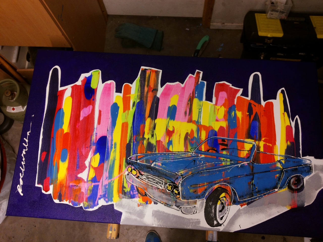 Auto Kleurrijk Groot Acryl Zwarte Lijnen
