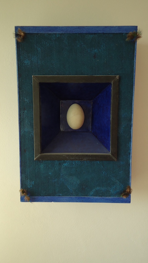 Dit is een van de drie zwaneneieren die ik vond in een verlaten nest. De zwanen waren met 6 jongen weg gepaddeld. Een zwanenei heeft een perfecte vorm, esthetisch kan daar in mijn ogen bijna niets tegenop. Het hele kunstwerk is eigenlijk een ode aan dit kunstwerk van de natuur.