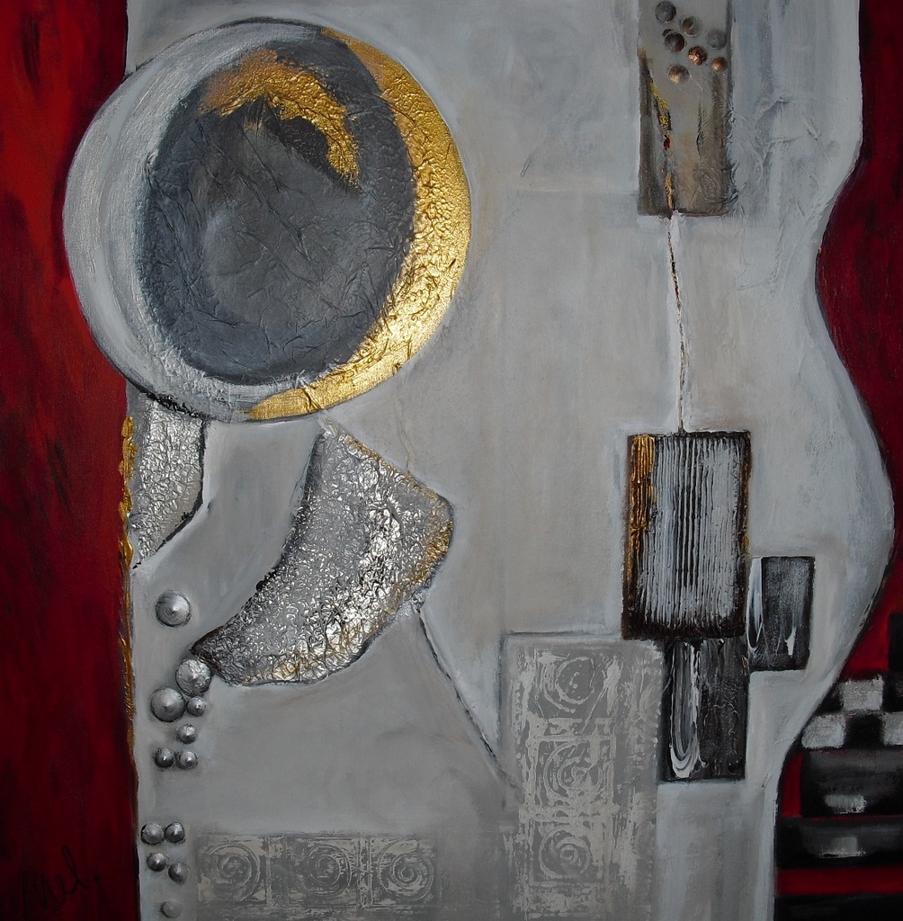 Grijs Rood Zwart Goud Natuur Abstraherend Bol Structuur