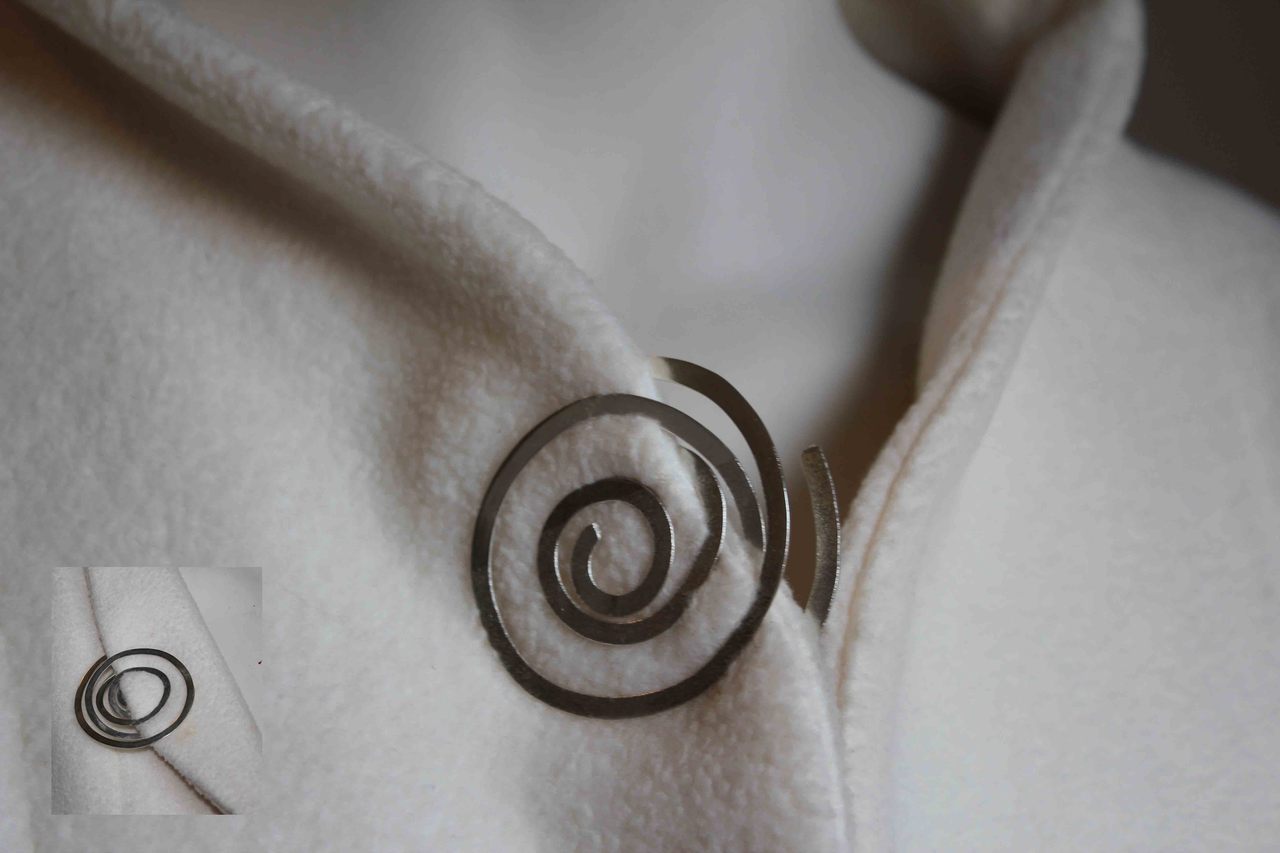Zilveren krul om op je revers te draaien. Steekt daardoor uit je revers. verkocht. Op aanvraag te maken.