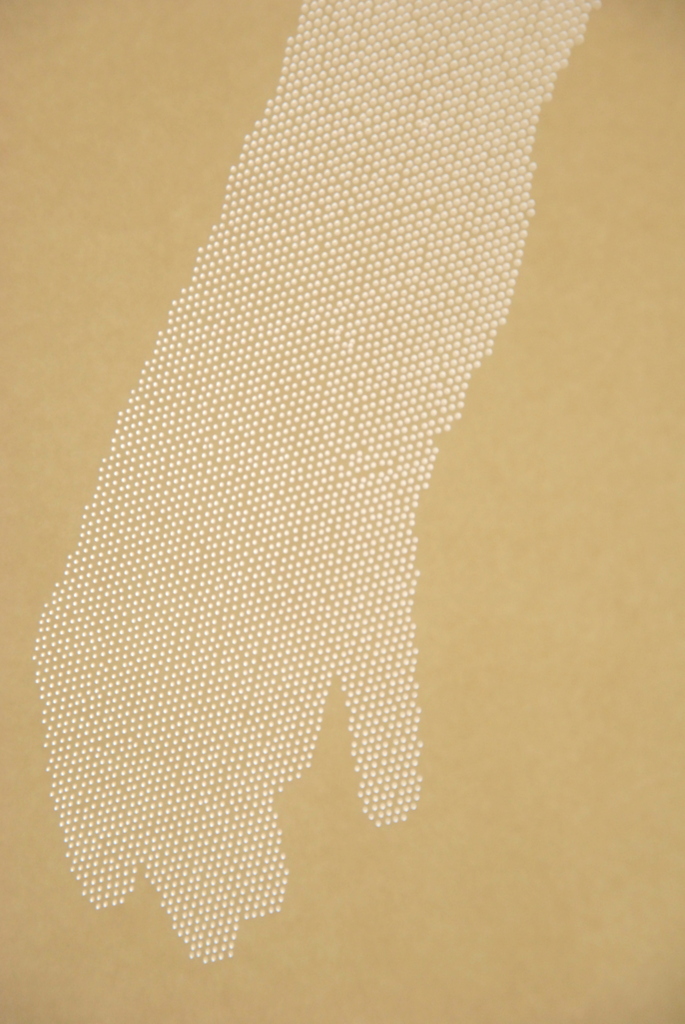 Door mijn ogen gezien, is de tastbare wereld opgebouwd uit puntjes. Vele bewegende puntjes, in verschillende dichtheid, veroorzaken vorm, maar veel minder vast dan je tastend zou voelen. In mijn werk communiceer ik deze waarneming.