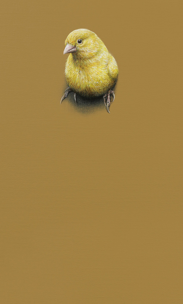 Kanarie (Serinus canaria). Dit doekje maakt onderdeel uit van de geschilderde installatie 'Multicultural'. Meer informatie over het project kun lezen op de informatiepagina.