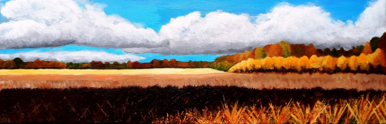 Herfstvelden, een landschap met een sureeel tintje om heerlijk in weg te dromen.