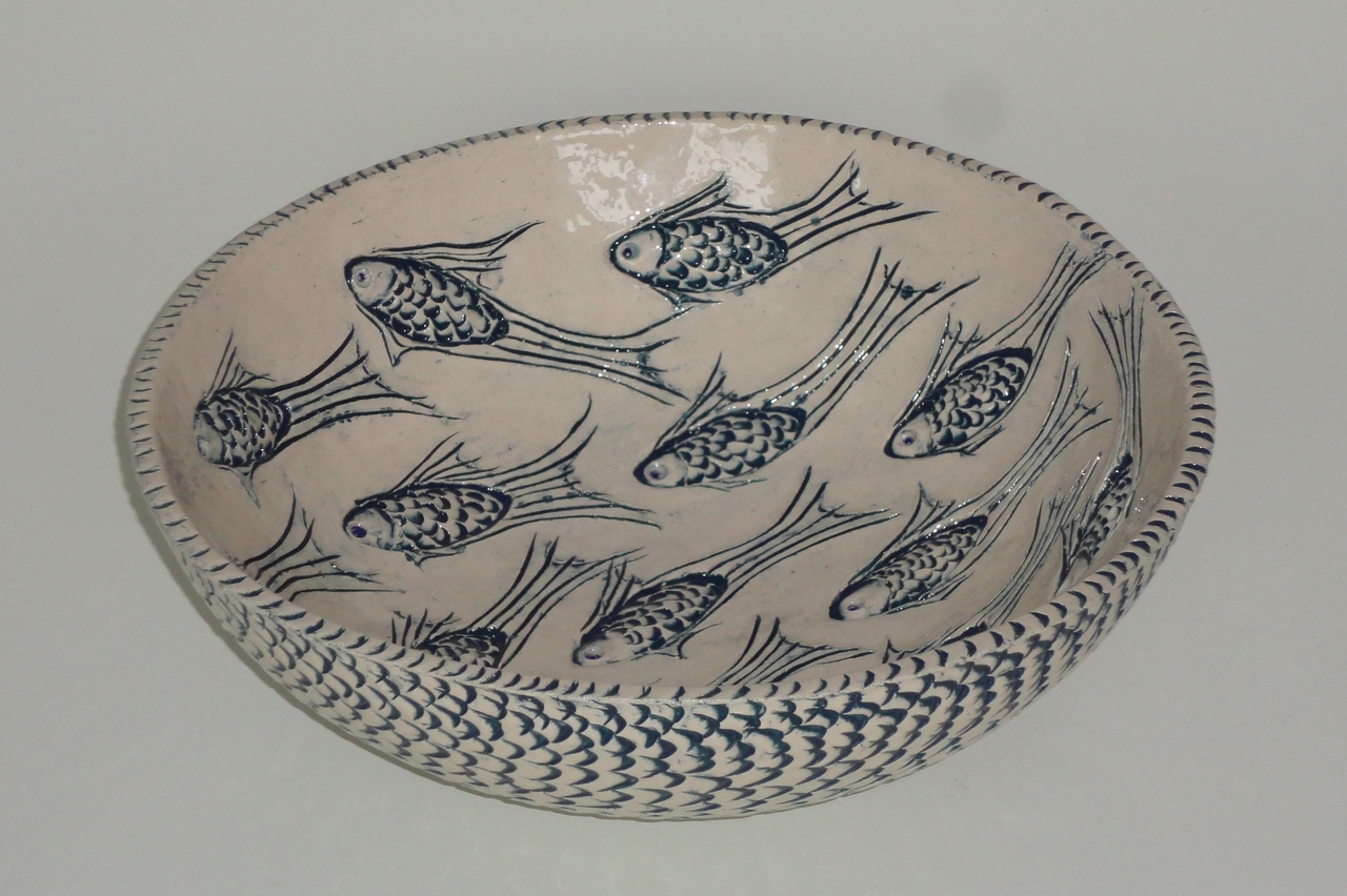 schaal met vismotief in relief