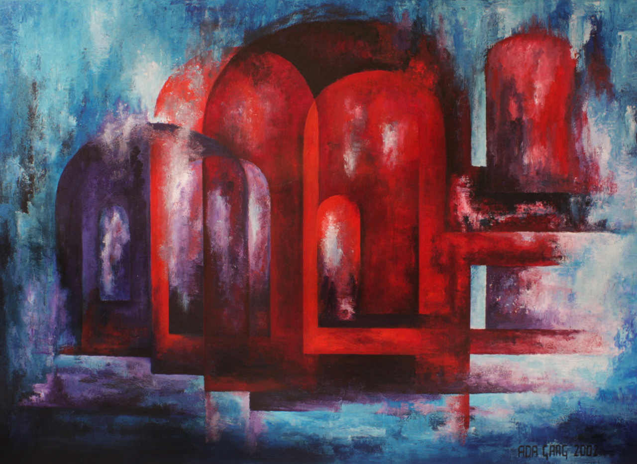 Abstract Mensen Rood Emotie Blauw Acryl Expressief Paars Blue Red Emotions Life Of Gevoelens Levensweg People Bogen Poorten Feelings Way Curves Gates
